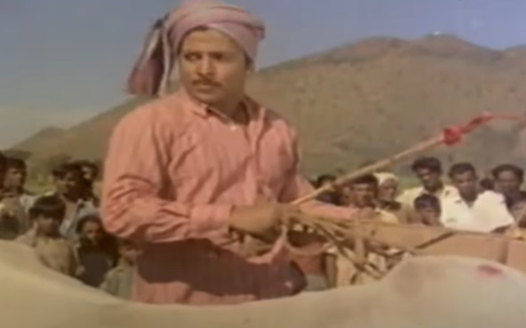 విశాలమైన మైదానంలో ఎడ్ల పోటీలు ప్రారంభమయ్యే ముందు పోటీదారులలో గెలవాలనే పట్టుదలను ప్రతిఫలించేలా ఢమఢమమంటూ డోలువాయిద్యాల శబ్దాలను వినిపించిన సంగీతదర్శకుడు పోటీలు జరుగుతూ ఉండగా కొంతసేపు సహజశబ్దాలను వినిపించాడు. పోటీదారుల కోలాహలం, ఎద్దులు లాగుతూ ఉండగా కర్రలు నేలకు రాసుకుంటూ వినిపించే బరబరశబ్దాలు, ఎద్దుల మెడలలోని గంటల శబ్దాలు, ఏయ్ ఏయ్ ఓయ్ ఓయ్ అంటూ ఎద్దులను అదిలించే శబ్దాలు, ప్రమాదాలు జరిగినపుడు జనాలు చేసే హాహాకారాలు వినిపిస్తుంటాయి. చిన్న ఎడ్లు, పెద్ద ఎడ్లు, తెల్ల ఎడ్లు, నల్ల ఎడ్లు, మచ్చల ఎడ్లు, అదుపు తప్పే ఎడ్లు, మొండికేసే ఎడ్లు, తప్పించుకు పోయే ఎడ్లు, క్రిందపడిపోయే పోటీదారులు, క్రిందపడ్డాక జారిపోయిన తమ తలపాగాలను పట్టించుకోకుండా తమ ఎద్దులను మరలా చిక్కించుకుని పోటీలో కొనసాగేందుకు కాలిసత్తువ కొద్దీ పరుగెత్తి ప్రయత్నించేవారు, కొంతరు క్రిందపడినపుడు కాలు తాడుకు తగులుకుంటే ఎద్దులు ఆగకుండా ఆ మనుషులను అలాగే లాగుకుపోయే దృశ్యాలు – ఇవన్నీ చూస్తుంటే మనం కూడా అక్కడే ప్రత్యక్షంగా ఉండి చూస్తున్నామేమో అనిపిస్తుంది. అల్లాటప్పా పోటీదారులు పడిపోయిన తరువాత, తొలగిపోయిన తరువాత, వెనుకబడిపోయిన తరువాత తీవ్రమైన పోటీదారులు మాత్రమే మిగిలిన తరువాత, గెలిచి తీరాలనే వారి పంతాన్ని తెగువను సూచిస్తున్నట్టు మరలా సంగీతం ప్రారంభమై మన ఉత్కంఠను పెంచుతుంది. దారి పక్కన ఇరువైపులా జనాలు తమ చేతులను, చేతులలోని తుండుగుడ్డలను, ఛత్రీలను ఊపుతూ, ఎగురుతూ కేరింతలు కొడుతూ పోటీదారులను ఉత్సాహాన్ని పెంచుతుంటారు. చివరకు గెలిచిన మనిషిని గ్రామప్రజలు కరతాడధ్వనులతో అభినందిస్తారు. పూలమాలలు వేస్తారు. భుజాలమీదకెక్కించుకుని మోస్తారు.